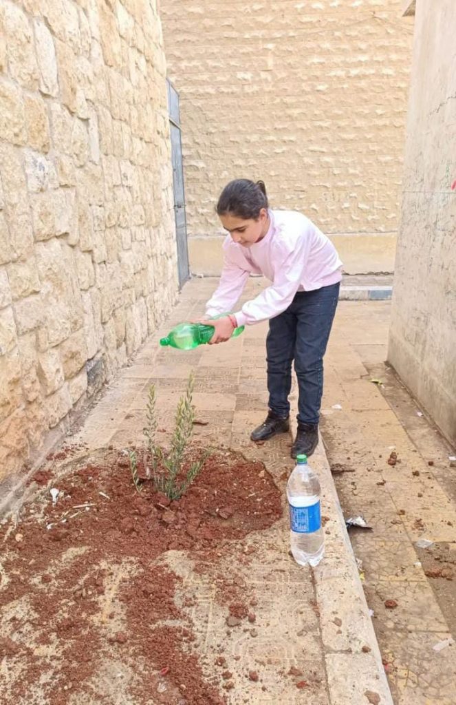 Es stehen vorläufig ca 25.000 Feigen, Oliven, Granatapfel, Orangen, Datteln, Weinstöcke und Rosen und andere Blumen in der Baumschule zur Verfügung. Sie wurden dieses Jahr von Hassan Abo Ali selbst aus Stecklingen gezogen und werden von 12 Frauen betreut, den „Kleinen Schwestern Maryams“, die damit als einige von 150 betreuten Familien einen richtigen „Beruf“ ausüben können und darüber sehr glücklich sind.